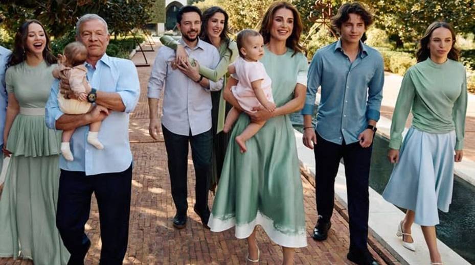 كتب / رضا اللبان نشرت الملكة رانيا، زوجة العاهل الأردني، الملك عبدالله الثاني، صورة للعائلة الملكية الأردنية تضم الملك والملكة والأبناء الأمراء والأميرات والحفيدتين. الصورة نشرتها الملكة رانيا