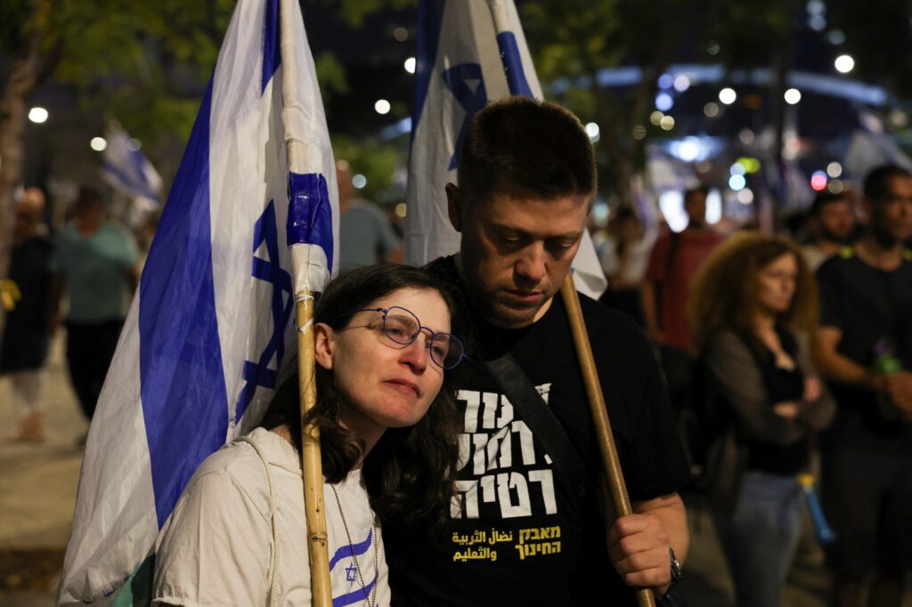 وأفادت مراسلتنا، بتظاهر الآلاف ضد حكومة نتنياهو عند تقاطع كابلان في تل أبيب، مطالبين بانتخابات مبكرة.