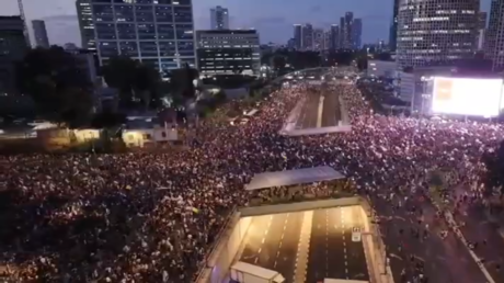 وأفادت هيئة البث الإسرائيلية، نق مصدر في الشرطة، اليوم الأحد، بأن “100 ألف شخص شاركوا في المظاهرة في (كابلان) بتل أبيب”.
