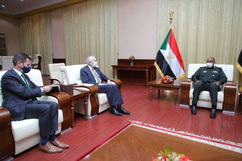 وهنأ كلا من المبعوث الأمريكي والأوروبى رئيس مجلس السيادة بالتوقيع على إعلان المبادئ بين الحكومة الانتقالية والحركة الشعبية، وذلك خلال استقبال البرهان لهما بالقصر الجمهوري بالسودان..