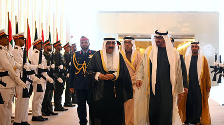 وحلق فريق “فرسان الإمارات” الوطني للاستعراضات الجوية في سماء قصر الوطن، مشكلا لوحة لعلم الكويت. كما تزينت معالم أبو ظبي وشوارعها بأعلام الكويت والعبارات الترحيبية بزيارة الشيخ مشعل الأحمد الجابر الصباح إلى البلاد.