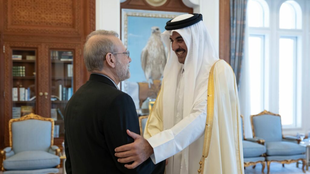 وبحث أمير قطر مع لاريجاني “الجهود المبذولة لخفض التصعيد وتعزيز الأمن الإقليمي، إلى جانب عدد من القضايا الإقليمية والدولية ذات الاهتمام المشترك”.