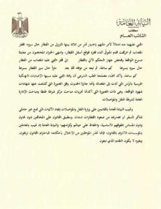 بيان النيابة العامة بتاريخ 2 / 11 / 2019