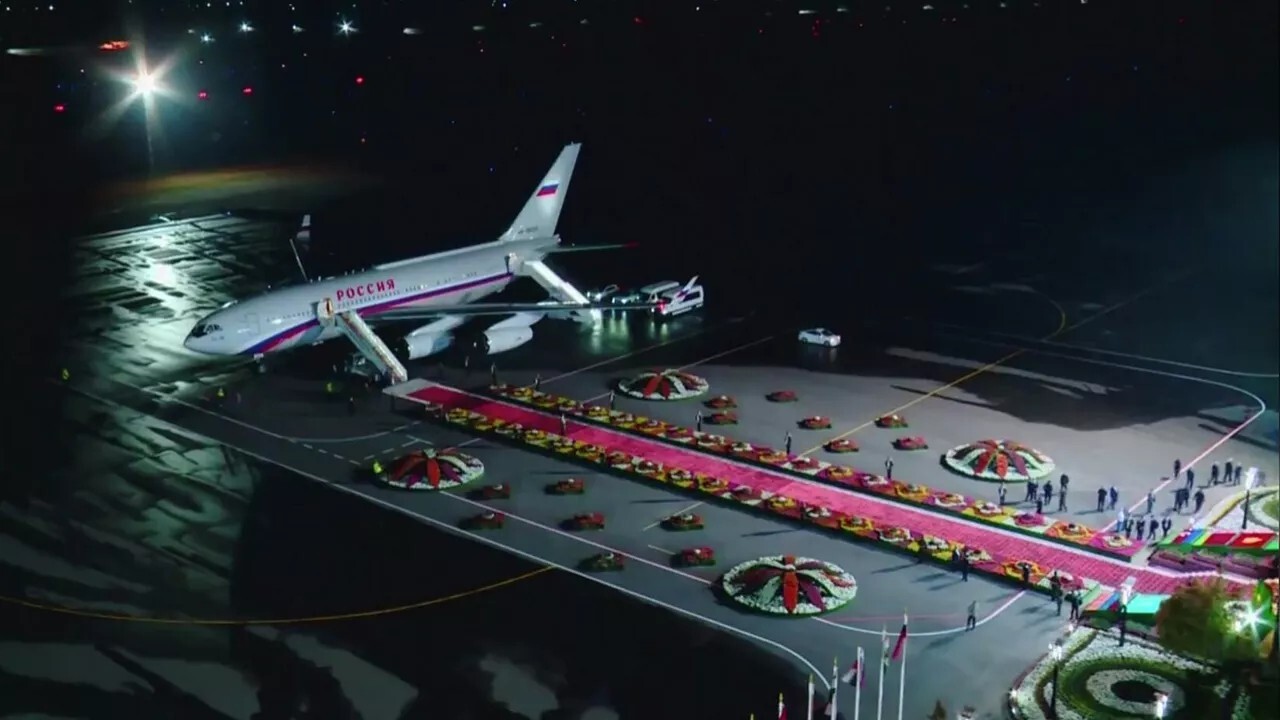 أفاد مراسل وكالة نوفوستي من مكان الحدث، بأنه تم استقبال الرئيس الروسي فلاديمير بوتين في طاجيكستان بالسجادة الحمراء وسجادة الزهور وحرس الشرف.