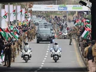 عشرات الآلاف من الأردنيين، اليوم ، على جانبي الطريق قرب مطار ماركا، وحتى بوابة القصر الملكي في العاصمة عمّان، لاستقبال العاهل الأردني الملك عبدالله الثاني، العائد من واشنطن، تعبيرا عن تأييدهم لموقفه الرافض لتهجير الفلسطينيين من غزة..