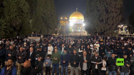 نشرت وكالة “رابتلي” فيديو يظهر آلاف المسلمين تجمعوا في المسجد الأقصى ليلة الخميس، لأداء صلاة التراويح في أول ليلة من شهر رمضان.