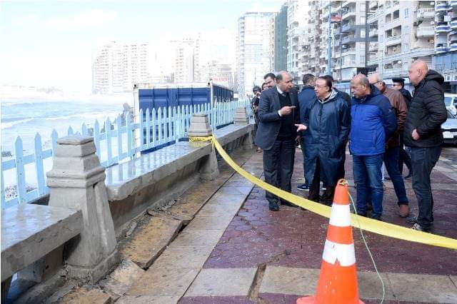 تفقد اللواء محمد الشريف محافظ الإسكندرية، منذ قليل منطقة شاطئ إدوار الخراط بحي المنتزه أول حيث تسببت الأمواج العنيفة في حدوث تحطم وتشقق جزء من الرصيف، وميل السور