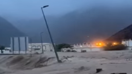 أظهرت مقاطع مصورة تداولتها وسائل إعلام وصفحات إخبارية لحظة إطلاق صفارات الإنذار في إمارة الفجيرة في الإمارات بعد تعرضها لسيول غير مسبوقة.