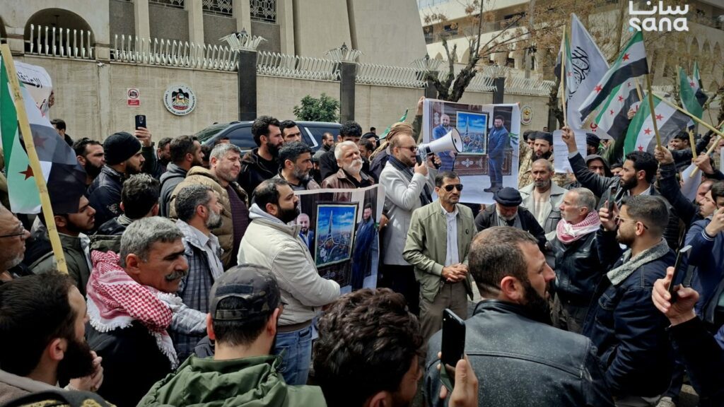 وكانت وكالة “سانا” السورية للأنباء، أفادت منذ يومين بتنظيم “وقفة أمام السفارة الإماراتية في دمشق تطالب بالإفراج عن القيادي عصام بويضاني الذي زعمت أنه محتجز في دولة الإمارات”، على حد قول الوكالة .