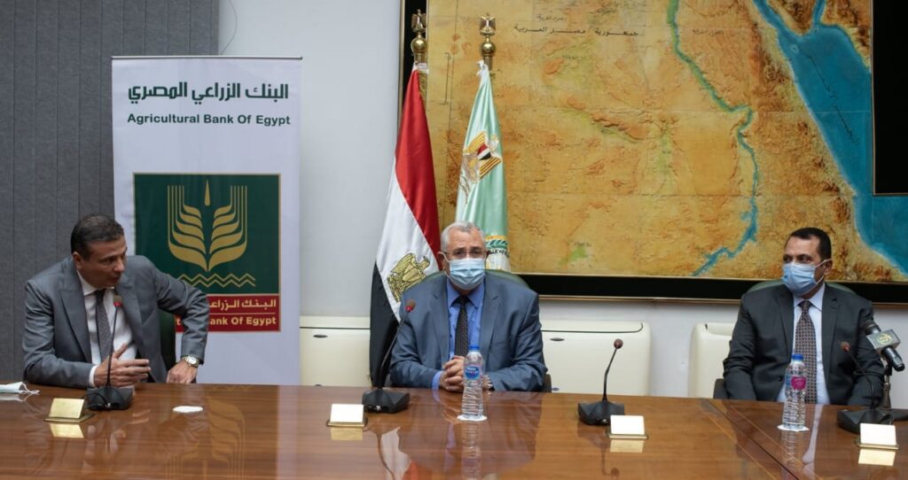 وقع السيد الأستاذ علاء فاروق رئيس مجلس إدارة البنك الزراعي المصري والسيد اللواء مهندس أ.ح. عمرو عبد الوهاب رئيس مجلس الإدارة والعضو المنتدب لشركة تنمية الريف المصري الجديد بروتوكول تعاون لتمويل المستثمرين المستفيدين من المشروع القومي لاستصلاح واستزراع وتنمية المليون ونصف المليون فدان، بحضور ورعاية معالي وزير الزراعة الأستاذ السيد القصير. وشهد مراسم التوقيع الأستاذ سامي عبد الصادق نائب رئيس مجلس إدارة البنك والأستاذ صالح الشامي الرئيس التنفيذي للإئتمان وعدد من قيادات وزارة الزراعة والبنك الزراعي المصري وشركة تنمية الريف المصري الجديد.