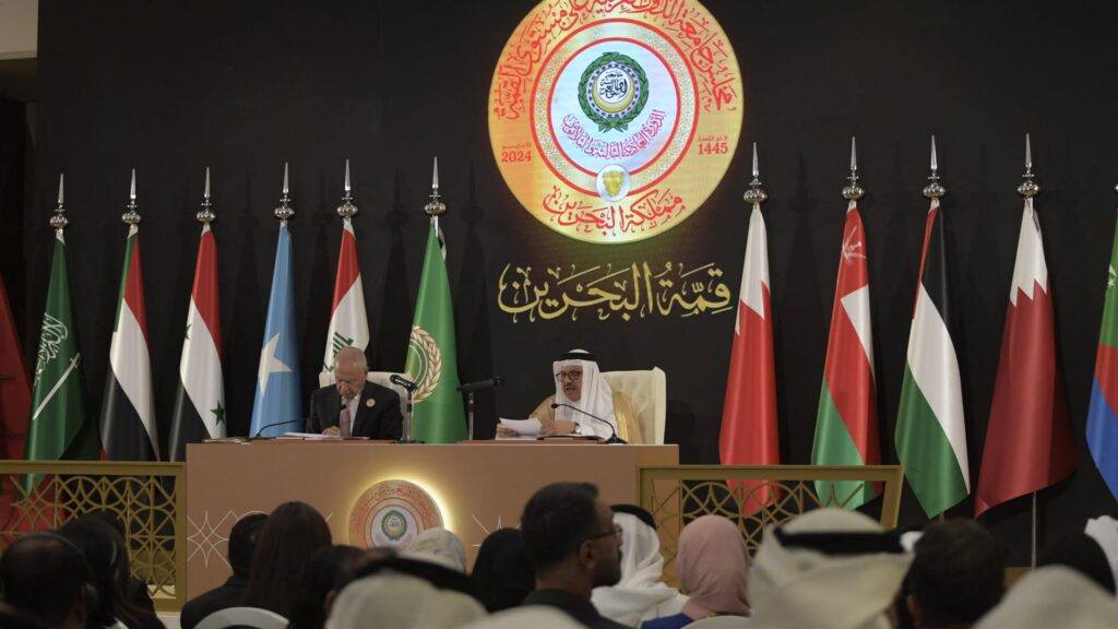 وفي قمة جامعة الدول العربية في البحرين، أصدر القادة “إعلان المنامة”، الذي يتضمن دعوة لوضع إطار زمني للتوصل إلى حل الدولتين، وإلى أن يصدر مجلس الأمن التابع للأمم المتحدة قرارًا بتأسيس دولة فلسطينية.