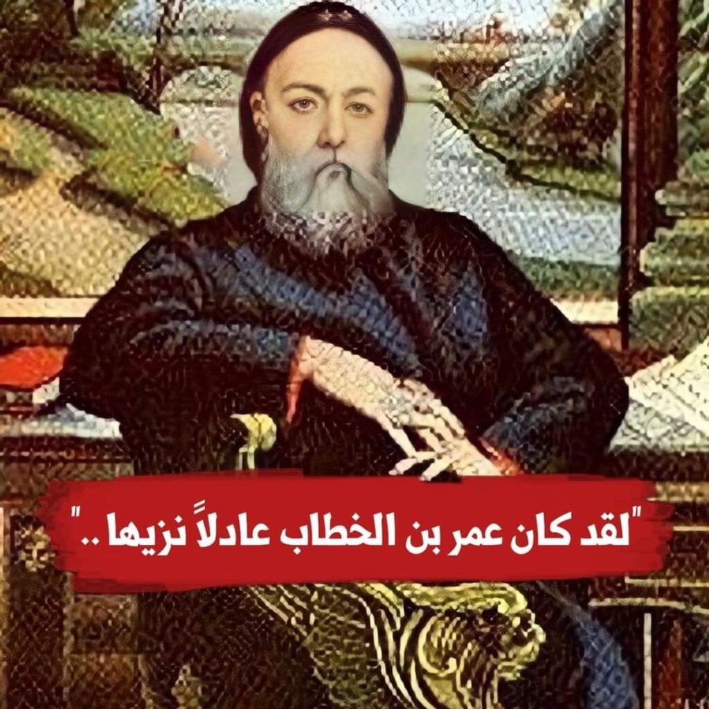 (( وكان عمر بن الخطاب موضع الثناء .. والحق يقال: إنه كان عادلاً وغير جشع، بحيث أنه لم يأخذ شيئاً لنفسه مما غنم من أموال وكنوز الفرس والروم بعد السيطرة عليهم .. ! ))