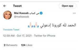 و غردت الفنانة مي كساب قائلة : “الحمد لله كورونا ادعولي”.
