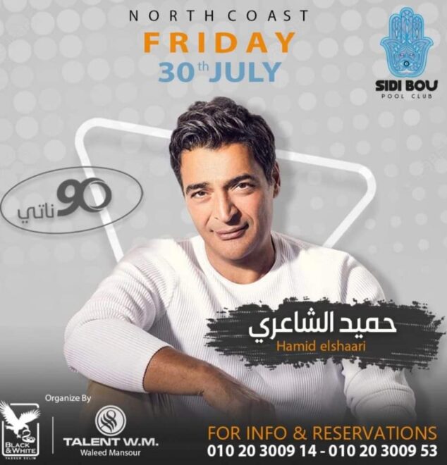 يجتمع الفنانين حميد الشاعري و هشام عباس حفل غنائي يوم الجمعة المقبل في قرية “سيدي بو” بالساحل الشمالي ، و يقوم بتنظيم الحفلة المنتج و منظم الحفلات وليد منصور ، و يرفع الحفلة شعار “تسعيناتي” انتسابا لهذا الجيل الذي قدم نجاحات كبيرة خلال مسيرته ، كما رحب رواد السوشيال ميديا باجتماع النجمين في حفل لايف واحد ، فور الإعلان عن الحفلة التي ستقام مساء يوم الجمعة المقبلة ، خاصة الأجيال التي ارتبطت كثيرا يهؤلاء النجوم و نشأوا على أغنياتهم الشهيرة و الدويتوهات التي غنوها معا ، و أعمالهم التي انتشرت بين الأجيال المختلفة و ارتبط بها الجمهور.