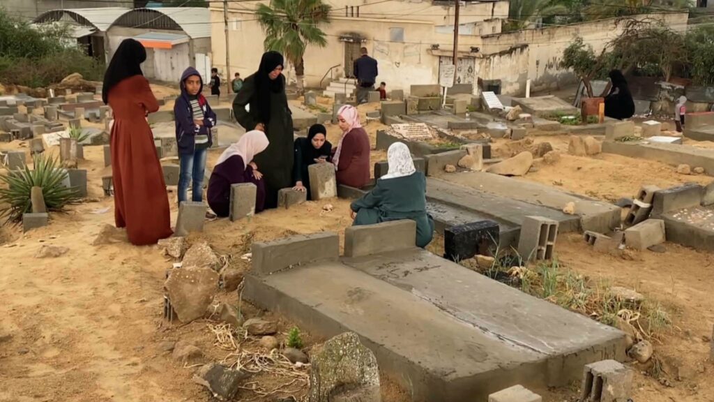 ولكن، كما أفاد مراسل CNN نيك روبرتسون، في تقريره المصور أن العيد اتسم هذا العام بالحزن والخسارة والفقدان للأحبة والأهل في غزة