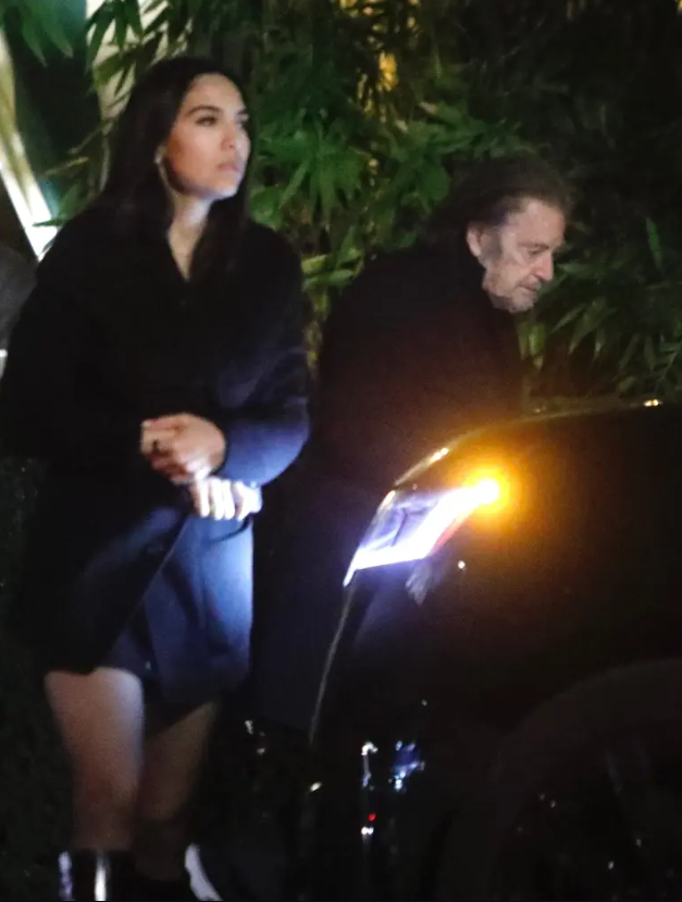 وفي الوقت نفسه، ارتدى إل باتشينو معطفا طويلا بلون داكن وسروالا أسود وحذاء رياضيا أسود. وظهر كلاهما بتعابير وجه جادة في أثناء تواجدهما خارج المؤسسة المخصصة للأعضاء فقط في “ويست هوليوود”.