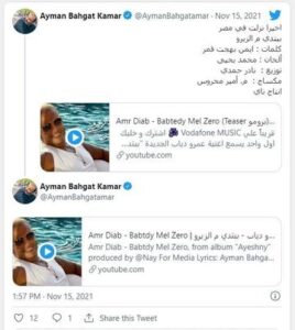 و نشر أيمن بهجت قمر الأغنية عبر حسابه الرسمي و الشخصي بموقع التواصل الإجتماعي “تويتر” و علق عليها قائلا : “أخيرًا نزلت في مصر”