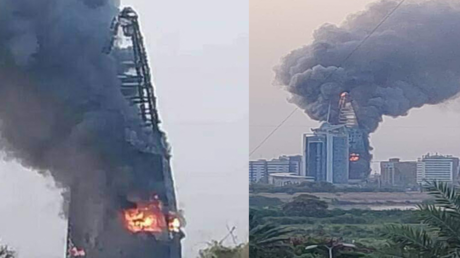 وتداول رواد مواقع التواصل والصفحات الإخبارية مقطع الفيديو وصورا تظهر احتراق البرج الذي يعد أحد معالم العاصمة السودانية الخرطوم.