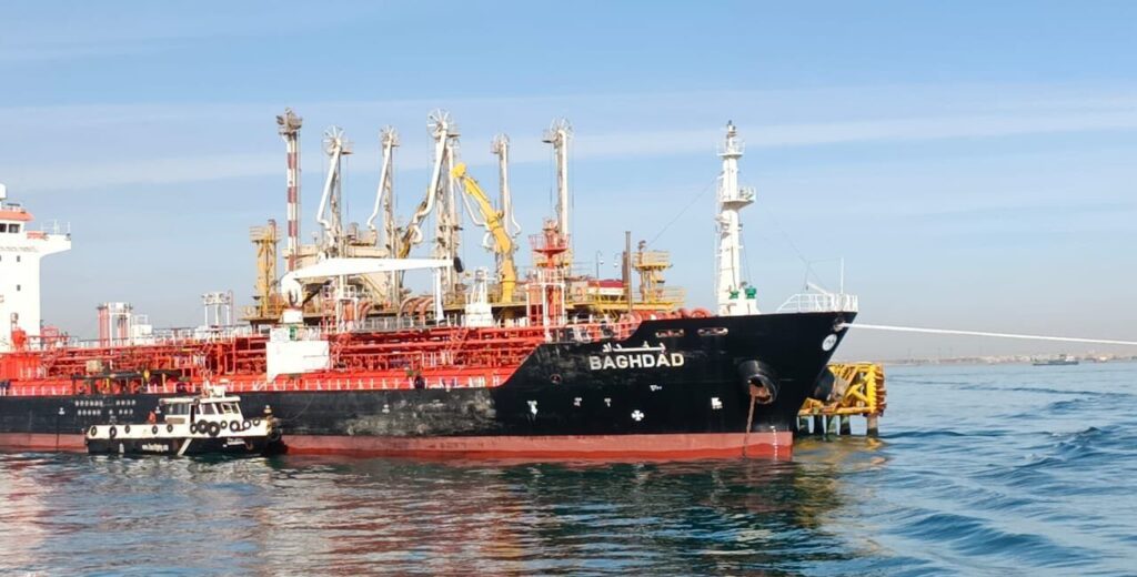 باخرة عراقية تصل إلى الأراضي الفلسطينية، محملة بـ10 ملايين لتر من الوقود دعما للشعب الفلسطيني
