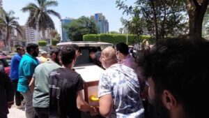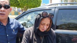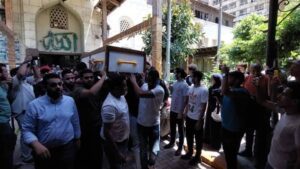 بكاء وانهيار نهلة سلامة أثناء تشييع جثمان والدتها بمسجد مصطفى محمود