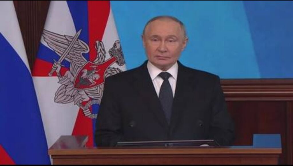 جاء هذا التصريح في كلمة ألقاها بوتين خلال اجتماع موسع لمجلس وزارة الدفاع الروسية في موسكو اليوم الأربعاء.