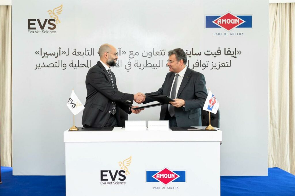 وقعت «إيفا فيترناري ساينسز للخدمات البيطرية» اتفاقية تعاون استراتيجية مع«آمون» للأدوية، التابعة لـ«أرسيرا»، بهدف تعزيز التعاون في مجال الأدوية البيطرية وزيادة الطاقة الإنتاجية بما يلبي احتياجات السوق المحلية والتوسع نحو التصدير، وذلك تماشياً مع رؤية مصر 2030.