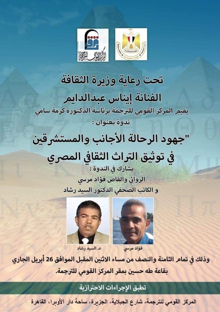 جهود الرحالة الأجانب والمستشرقين فى توثيق التراث الثقافى المصرى فى ندوة تحت رعاية وزيرة الثقافة إيناس عبد الدايم