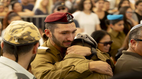 جنود إسرائيليون في جنازة لزمبلهم القتيل.