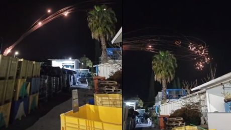 أظهرت مقاطع فيديو متداولة رشقة صاروخية كبيرة تم إطلاقها من لبنان على مستوطنة كريات شمونا، فيما حاولت صواريخ القبة الحديدية اعتراضها.