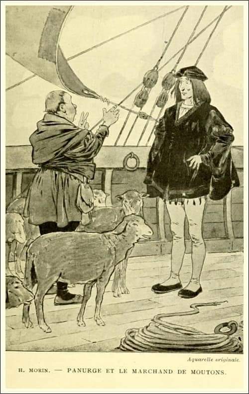 حدث أن وقع شجار على سطح المركب بين “بانورج” والتاجر “دندونو” صمم على أثره “بانورج” أن ينتقم من التاجر الجشع، فقرّر شراء الخروف الأكبر من التاجر بسعر عال وسط سعادة دوندونو بالصفقة الرابحة.