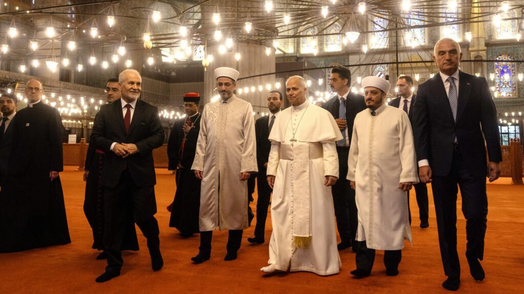 قام البابا لاوُن الرابع عشر بأول زيارة لمسجد منذ انتخابه، ورغم خلعه حذاءه احترامًا، إلا أنه لم يُظهر أي علامات للصلاة.