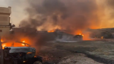 وأظهرت مقاطع الفيديو المنطقة المستهدفة، وقد تصاعدت منها ألسنة اللهب والدخان، جراء الصواريخ التي أطلقت من لبنان.