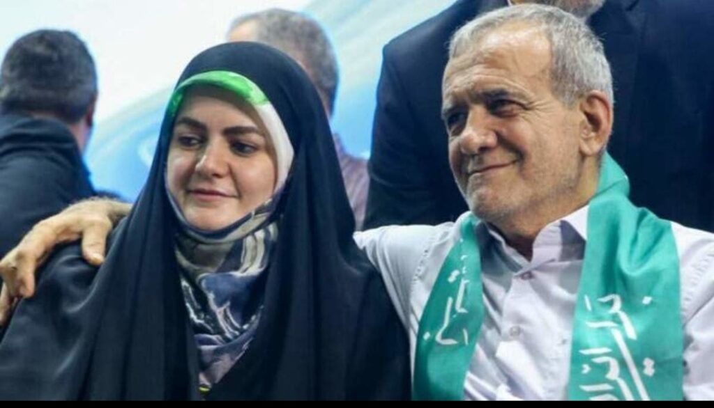 إذ إلى جانب مسؤولين رسميين رافقوه في هذه السفرة كوزير الخارجية، عباس عراقجي، ومساعده للشؤون الاستراتيجية، محمد جواد ظريف، فضلا عن مساعدته لشؤون المرأة، زهراء بهروز آذر ومدير المؤسسة الرئاسية ومساعد الرئيس مهدي سنائي، سافر معه عدد من أبنائه، بالإضافة إلى ابنته وزوجها اللذين لا يتوليان أي منصب رسمي أو حكومي.