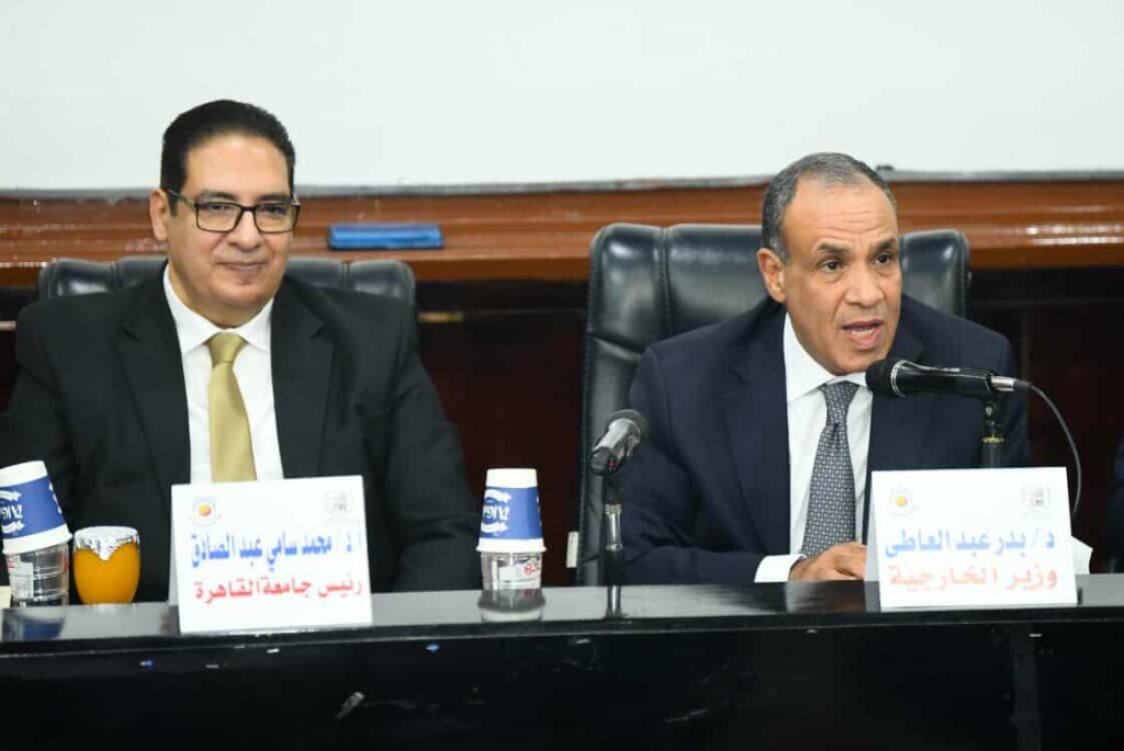 ألقى د. بدر عبد العاطي وزير الخارجية والهجرة وشئون المصريين بالخارج، اليوم محاضرة بكلية الاقتصاد والعلوم السياسية بجامعة القاهرة، بحضور الدكتور محمد سامي عبد الصادق رئيس جامعة القاهرة والدكتور ممدوح اسماعيل عميد كلية الاقتصاد والعلوم السياسية وقيادات الكلية وأعضاء هيئة التدريس والطلاب..