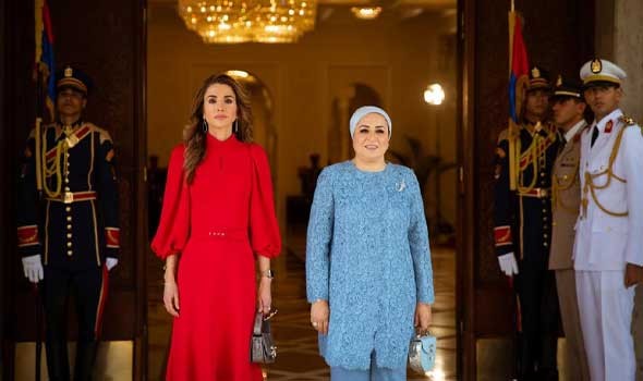 عقيلة الرئيس السيسي ترحب بالملكة رانيا