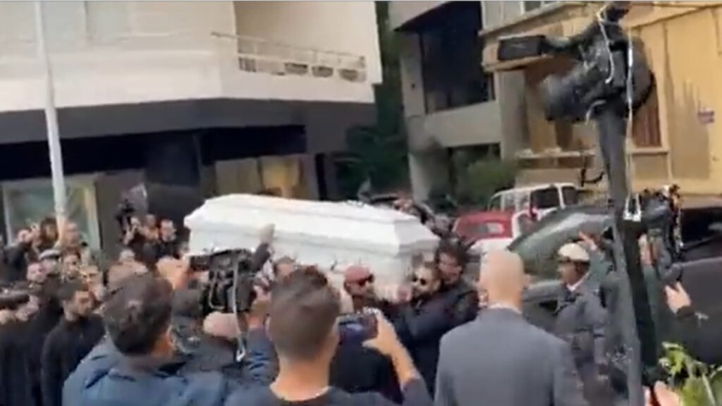 شُيع جثمان “وديع” نجل جورج وسوف على وقع أغنيته الشهيرة “يوم الوداع”، الأحد، إضافة إلى مراقصة نعشه عند دخوله إلى كنيسة الروم الأرثوذكس في بيروت، قبل نقله إلى سوريا ليتم موارته الثرى في مسقط رأس الفنان السوري بريف محافظة طرطوس غربي سوريا، الأحد.