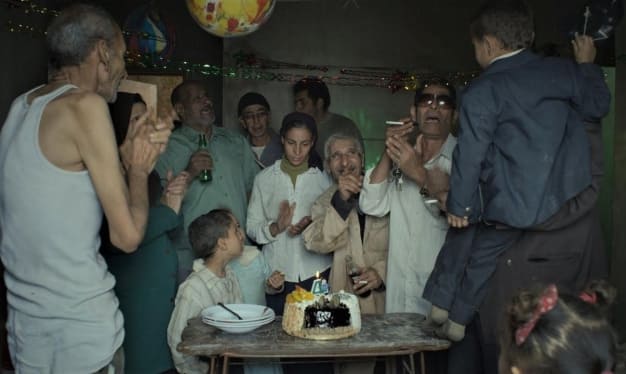 في مُفْتَتَح الفيلم، الّذي لا يسمّي شخوصه، ولا يعيّن مكان أحداثه وزمانها، نرى زوجة مستكينة جدًّا، لا ترفع وجهها في وجه زوجها، وتسمع بصمت وتطيع، أكثر ممّا تردّ أو تبالي. الزوج، الآمر الناهي والمسيطر على شؤون العائلة، يقيم حفلًا لعيد ميلاد ابنه، رغم ضيق الحال والاستدانة، ويشتري تحفة تبدو غالية الثمن، ويجلب ساحرًا يحوّل العصا إلى وردة، والمنديل إلى شريط ملوّن، والزوج نفسه إلى دجاجة، لكنّه لا يستعيد أيًّا من هذه إلى هويّتها الأصليّة.