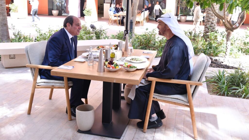 وكان السيسي قد زار الإمارات الإثنين حيث كان باستقباله رئيس البلاد الشيخ محمد بن زايد آل نهيان و”ناقشا التطورات الإقليمية”، وفق ما ذكرته الرئاسة المصرية.
