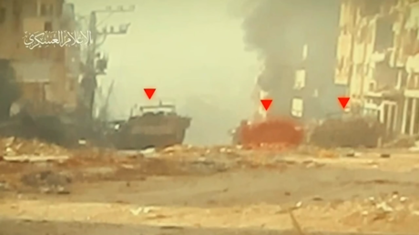 ويظهر الفيديو أن مقاتلي القسام نجحوا في استهداف عدد كبير من هذه الآليات، فيما اشتعلت النيران في إحداها بشكل كامل.