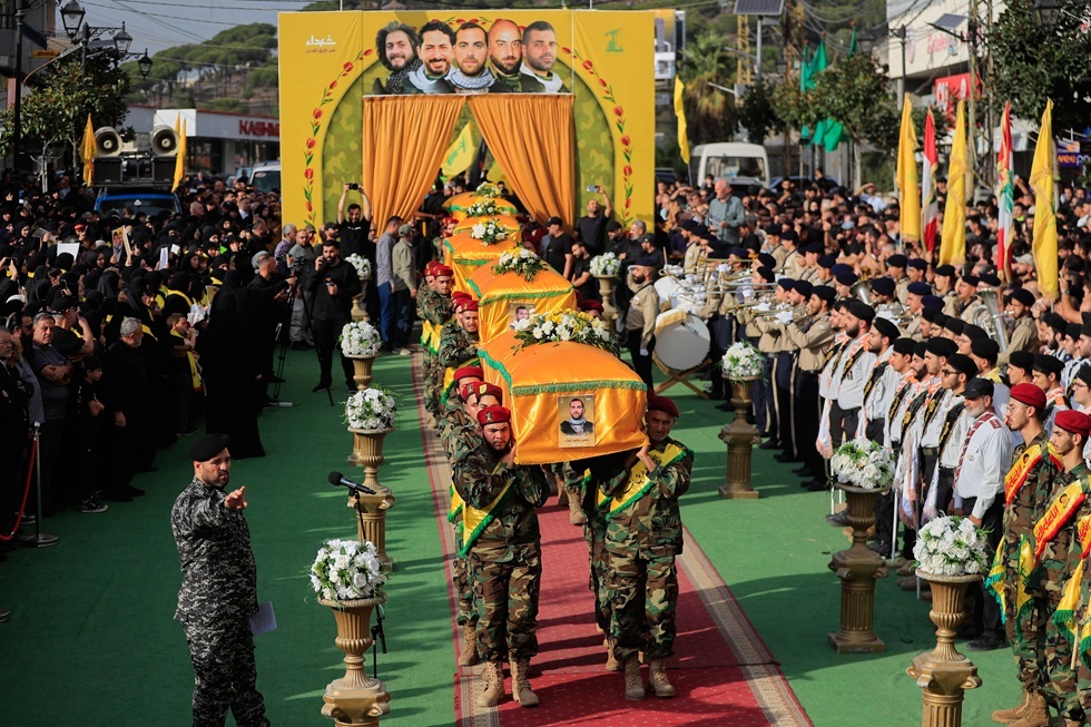 وبحسب فرانس برس، تجمع المئات في النبطية للمشاركة في تشييع العناصر الخمسة الذين لفّت نعوشهم برايات الحزب الصفراء فيما كانوا محاطين بشبان يرتدون الزي العسكري.