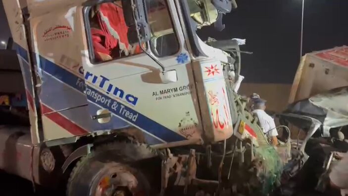 على الفور تم الدفع بالخدمات المرورية وسيارات الأسعاف الي موقع الحادث، وتم ضبط سائق “التريلا” المتسبب في الحادث.
