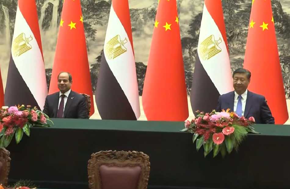 شهد الرئيس عبد الفتاح السيسي ونظيره الرئيس الصيني شي جين بينج، توقيع عدد من الاتفاقيات ومذكرات التعاون فى العديد من المجالات بين البلدين وذلك بقصر الشعب الرئاسي بالعاصمة الصينية بكين.