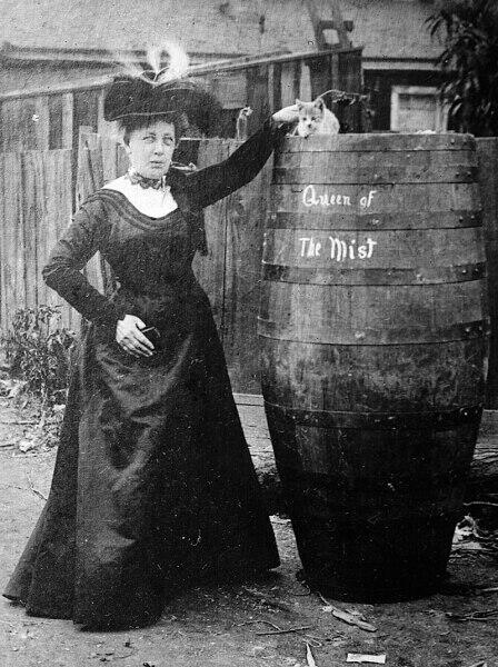 ناهزت من العمر 63 عاما ومع ذلك خاضت في 24 أكتوبر 1901 مغامرة شديدة الخطورة. جلست داخل برميل ضخم مغلق وتدحرجت من قمة شلالات نياجارا وهوت إلى الأسفل مع المياه المتدفقة.