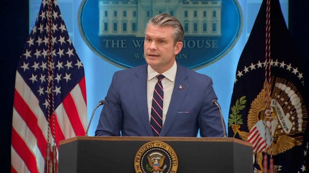 خلال مؤتمر صحفي في البيت الأبيض، الاثنين، هدّد وزير الحرب الأمريكي، بيت هيغسيث، إيران، قائلًا إن وتيرة الضربات العسكرية آخذة في الازدياد، مضيفًا: “أمام إيران خيار. فلتختر بحكمة، لأن هذا الرئيس لا يتهاون”.