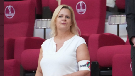 وفي إطار الحديث عن الجدل الذي أثارته وزيرة الداخلية الألمانية نانسي فيزر بعد ظهورها وهي ترتدي شارة “حب واحد” (المرتبطة بالمثليين) داخل الملعب، أشار الكعبي إلى أنه لا يعتقد أن الكثيرين رحبوا بهذا التصرف، وأنه كمسؤول في حكومة عندما يزور بلد آخر، لا يقوم بفعل يعرف أنه سيؤذي هذا البلد.
