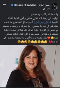 و قام كلا من الإعلامي رامي رضوان زوج الفنانة دنيا سمير غانم و الفنان حسن الرداد زوج الفنانة ايمي سمير غانم ، بنشر هذا الخبر المحزن عبر حسابهم علي مواقع التواصل الإجتماعي.