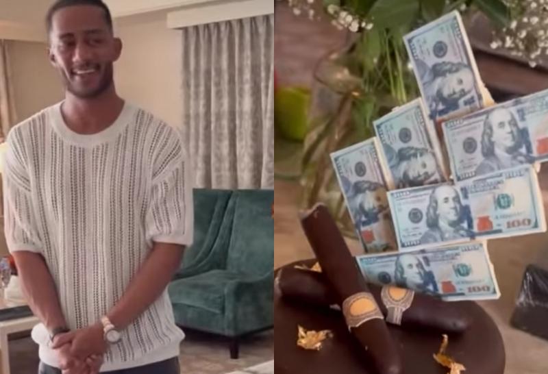 وظهر في المقطع المصور فريق من إدارة الفندق يهدي الفنان المصري محمد رمضان تورتة شيكولاتة مزينة بالدولارات والسيجار وصابونة ذهبية، وهي الأشياء التي أثار بها جدلا واسعا خلال الفترة الماضي على مواقع التواصل الاجتماعي.