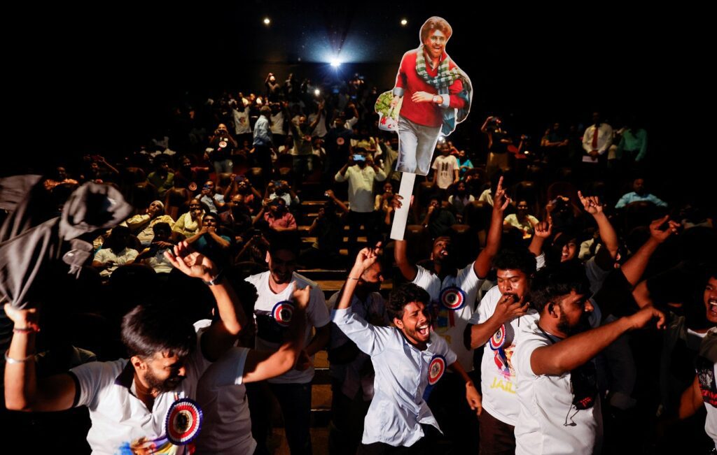 حمل المئات من المؤيدين المتحمسين لراجنيكانث، أحد أكبر نجوم السينما في الهند، قصاصات صوره وأكاليل من الزهور بينما كانوا في طريقهم إلى دار عرض سينمائي في مومباي لمشاهدة فيلمه الأخير جايلر (السجّان). بدأ العرض الأول في السادسة صباحا بالتوقيت المحلي.