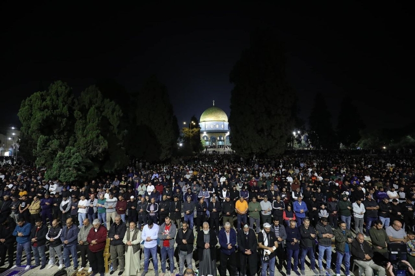 وقالت دائرة أوقاف القدس إن 70 ألف مصلٍ أدوا صلاتي العشاء والتراويح في المسجد الأقصى، تزامناً مع تواصل الدعوات لاستمرار شد الرحال إلى الأقصى، وتكثيف الرباط والاعتكاف في الأيام المتبقية من شهر رمضان.