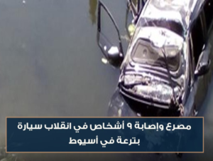 مصرع وإصابة 9 أشخاص في انقلاب سيارة بترعة في أسيوط